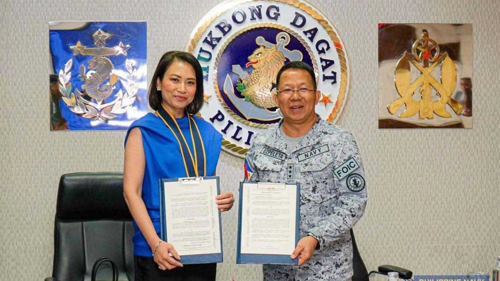 The agreement was signed by Vice Admiral Jose Maria Ambrosio Ezpeleta, Flag Officer in Command of the Philippine Navy, and Sheila Romero, chairwoman of Globalport Terminals Inc., with Milka Romero, Director of Globalport Terminals Inc., signing as witness.
